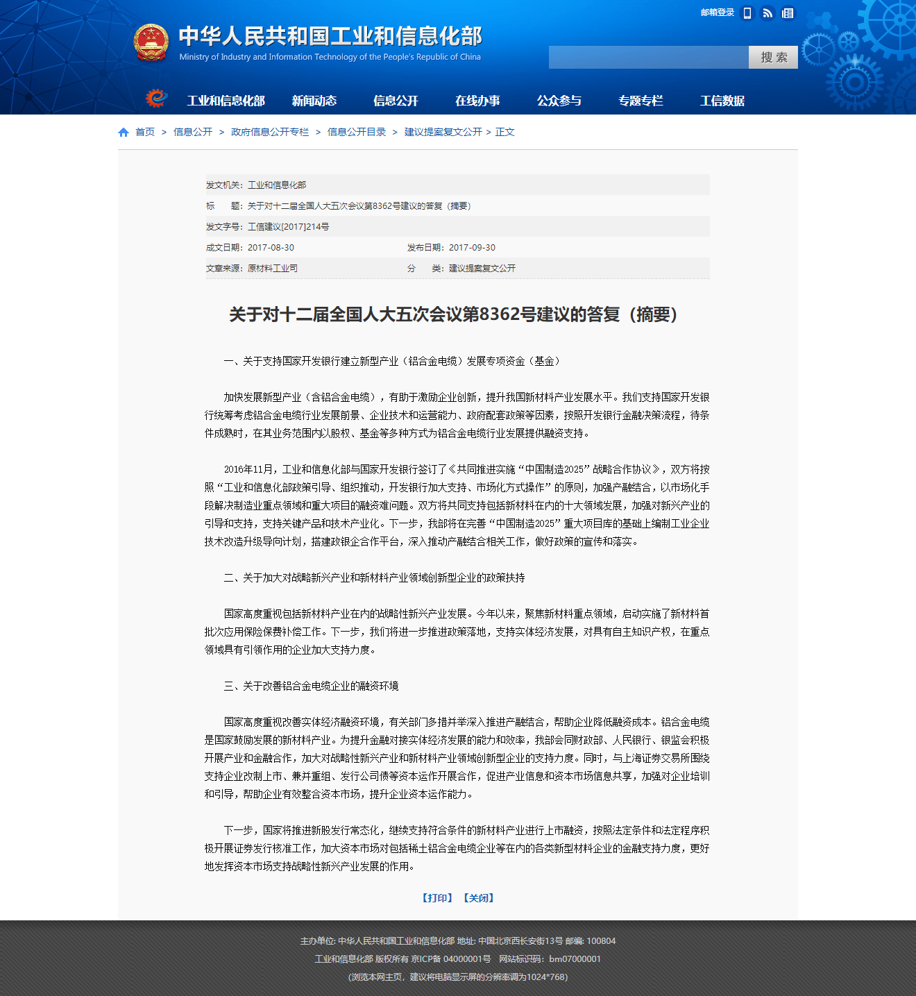 日前,國家工信部公開發(fā)布了《關(guān)于對十二屆全國人大五次會議第8362號建議的答復(fù)(摘要)》的文件,文件強(qiáng)調(diào):鋁合金電纜是國家鼓勵發(fā)展的新材料產(chǎn)業(yè),支持國家開發(fā)銀行建立新型產(chǎn)業(yè)(鋁合金電纜)發(fā)展專項(xiàng)資金(基金),支持改善鋁合金電纜企業(yè)的融資環(huán)境。